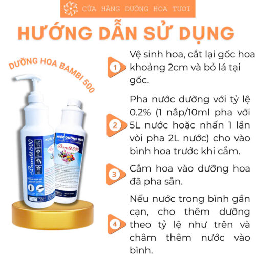 Nước dưỡng hoa giúp giữ hoa tươi lâu gấp 3-5 lần, hoa nở đều, cánh cứng, nước không hôi thối.