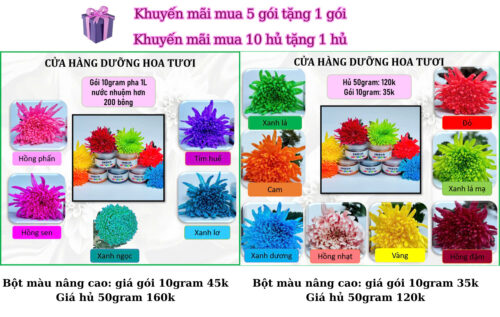 "Cửa hàng bán dưỡng hoa và nhuộm hoa này có đa dạng sản phẩm, từ các loại dưỡng chất giúp hoa tươi lâu đến những màu nhuộm hoa độc đáo, tất cả đều được tuyển chọn kỹ lưỡng và chất lượng rất tốt. Nhân viên nhiệt tình, tư vấn tận tâm, giúp tôi chọn được sản phẩm phù hợp với nhu cầu. Mức giá cũng rất hợp lý. Tôi chắc chắn sẽ quay lại ủng hộ trong tương lai!"